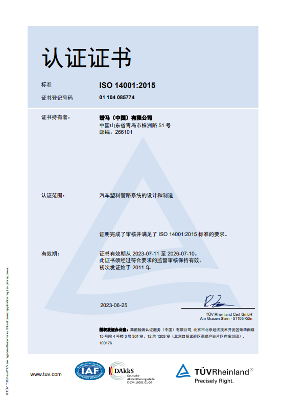 | 证书 | 有 | 证书 | IATF 16949、ISO 14001、ISO 45001 |
